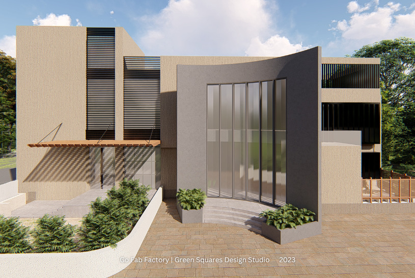 It is a factory office that represents its brand value using textures and aesthetics can create a strong visual impact on employees and visitors alike. The architecture incorporates textures and aesthetics that reflect the brand's identity, values, and philosophy. The use of materials such as steel, concrete, and glass creates an industrial aesthetic that represents the factory's manufacturing activities. Textures such as raw, exposed concrete walls, metal frames, and few wooden finishes also adds to character and depth to the space. A cohesive color palette which aligns with the brand's color scheme, bold and industrial designs that complement the space and can further enhance the branding efforts. Additionally, the lighting was strategically placed to highlight the brand's messaging and to create a specific ambiance that aligns with the brand. By incorporating textures and aesthetics, the factory office architecture will help employees feel more connected to the brand and foster a sense of pride and identity among them. It also creates a lasting impression on visitors, portraying the brand as a dynamic and forward-thinking organization.